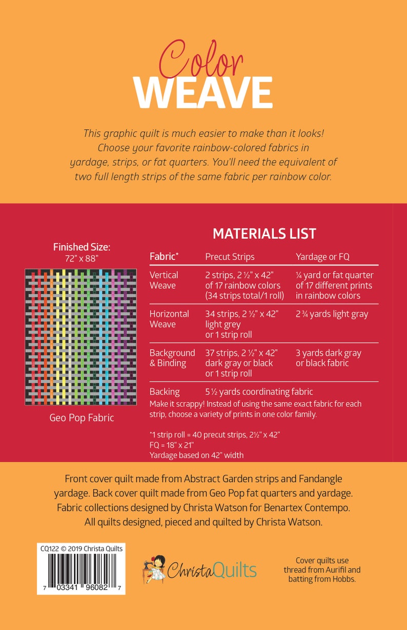 Pattern includes cutting instructions for strips or fat quarters.