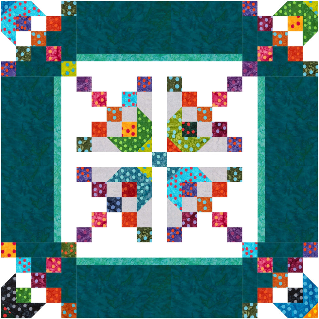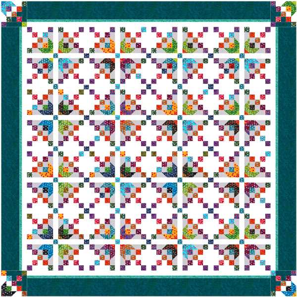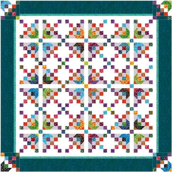 Fresh Flowers gives the perfect canvas for a delightful array of colors—go wild! The use of two subtle backgrounds creates a dynamic secondary design that grounds the Flowers and allows them to pop. It’s such a joyful pattern that looks amazing in any size, and any color-style; soft and muted looks as stunning as bright and vibrant! The Corner Blocks and extra-wide border makes the design perfect for overhang on beds.