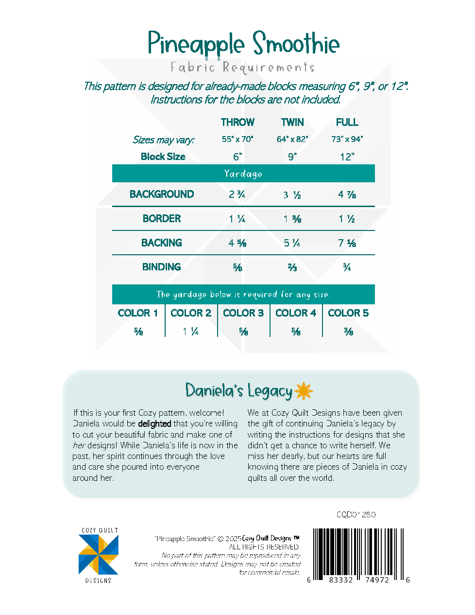 A finishing pattern for already-made blocks measuring 6", 9", or 12"!