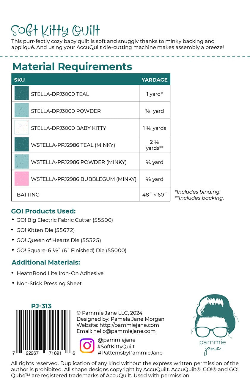 This purr-fectly cozy baby quilt is soft and snuggly thanks to Minky backing and appliqué. Using your AccuQuilt die-cutting machine makes assembly a breeze!