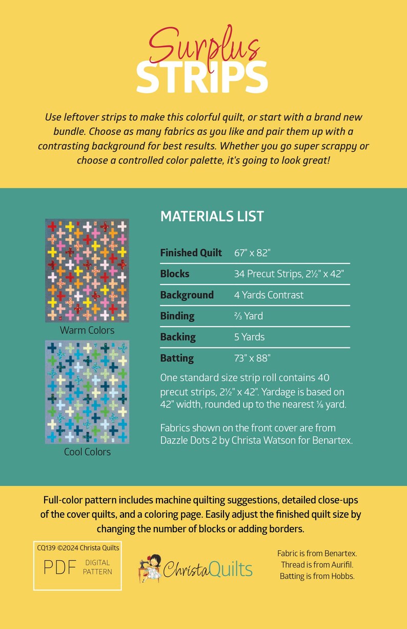 Use extra precut strips or scraps in your favorite colors plus background fabric to make your own version of Surplus Strips.